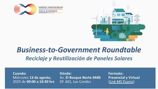 The Chilean-German Energy Partnership is a platform supporting a high-level intergovernmental dialogue on energy matters. We prepare and facilitate high-level meetings. We organize the exchange between relevant institutions in Chile and Germany.