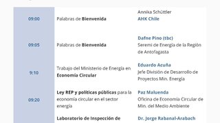 - "Economia Circular en Energía", Eduardo Acuña Fernández, Jefe División de Desarrollo de Proyectos, Ministerio de Energía (858 KB, PDF)