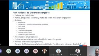 Marcel Silva Gamboa of the Sustainable Energy Division of the Ministry of Energy presented the process of the energy efficiency bill which is currently in its third stage in Congress and contains measures and obligations according to the national energy roadmap. "The Ministry of Energy will issue a decree with criteria to specify the companies - which will initially be the large consumers - that must report their energy consumption and energy intensity," he explained.
