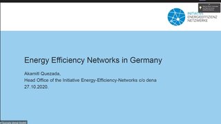 Akamitl Quezada, expert in energy efficiency and energy services from the German Energy Agency (dena), reported on the Energy Efficiency Networks initiative in Germany. "In 2002, the first networks were formed and today there are 283. Of these, 74% are regional and 22% operate within certain sectors," he said. The Energy Efficiency Networks initiative began in 2014 and will enter its second phase next year, which will also include concrete measures for climate protection. "By 2025 we expect the creation of 350 new networks and a reduction of 6 million tonnes of CO2," Quezada said.